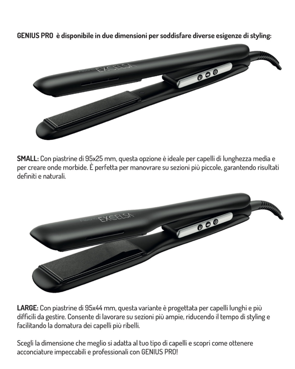 La Retrò Excelsa Genius Pro Future Tech utilizza l’Intelligenza Artificiale per analizzare lo spessore e le esigenze del tuo capello, regolando in automatico la temperatura per un calore sempre delicato e personalizzato.